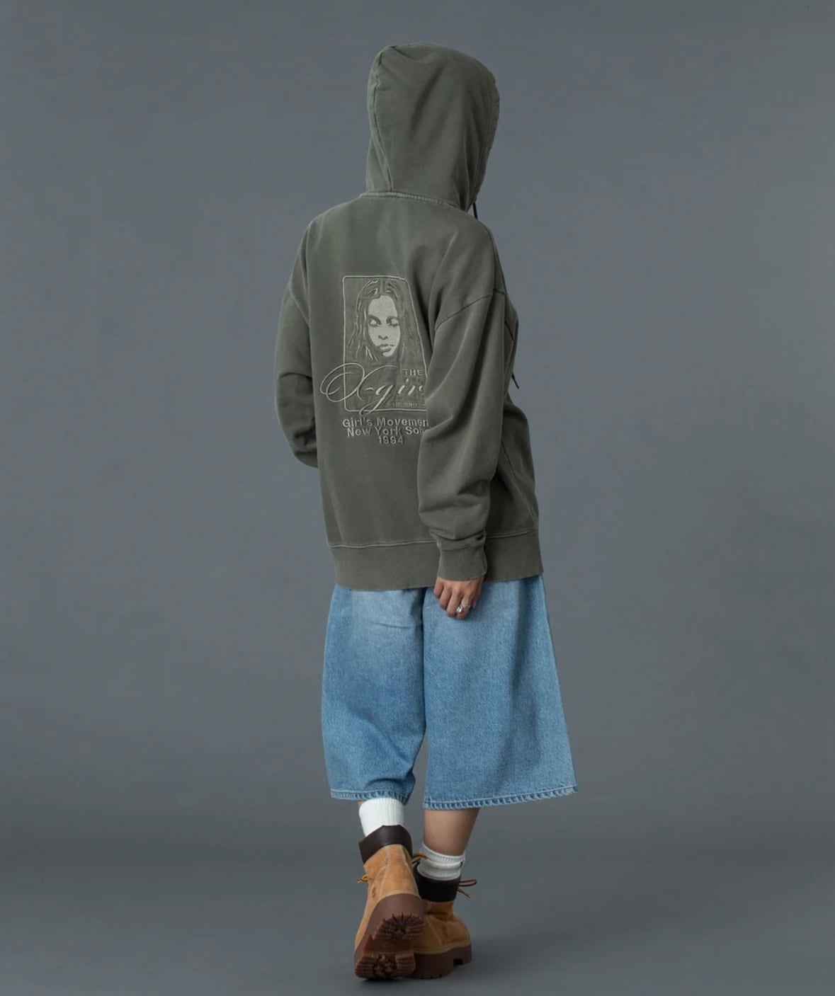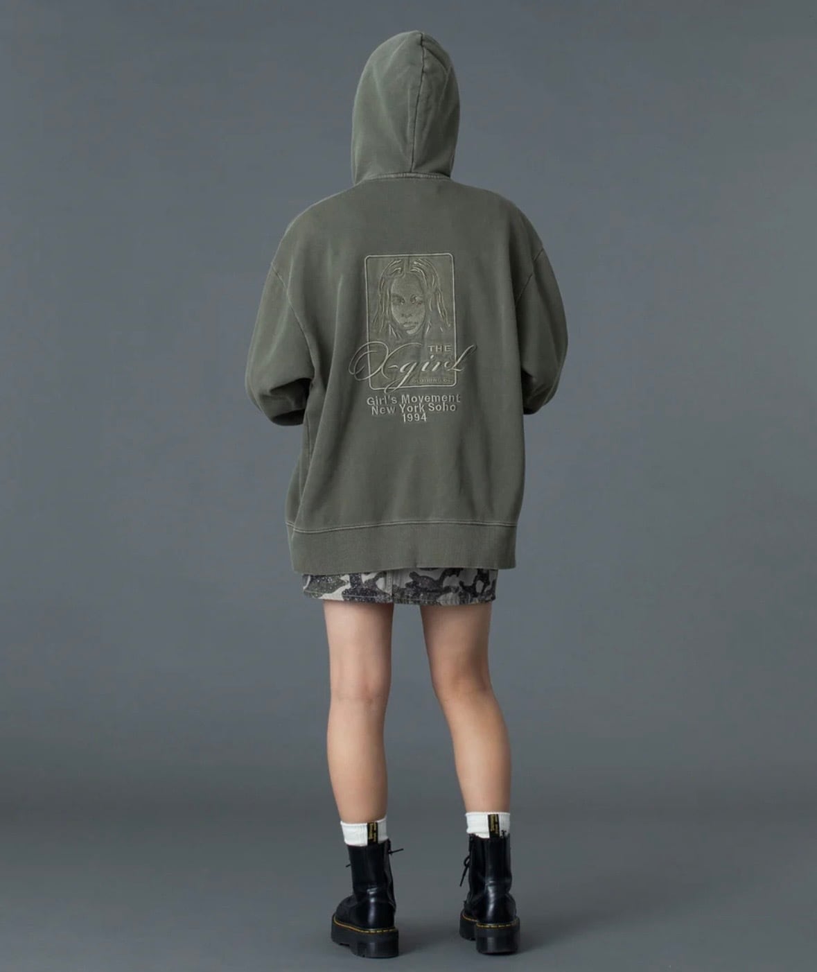 X-girl PIGMENT DYED FACE AND LOGO SQUARE PATCH ZIP UP SWEAT HOODIE