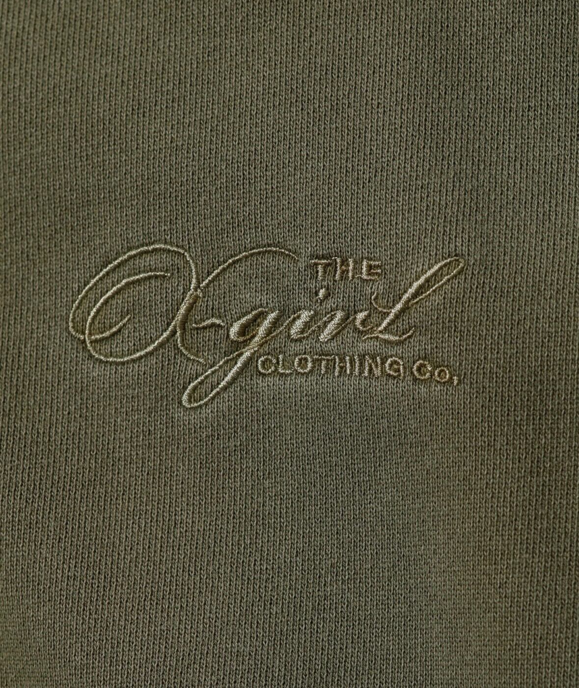 ツイルのロゴパッチごとピグメント染めした、独特な風合いが魅力。