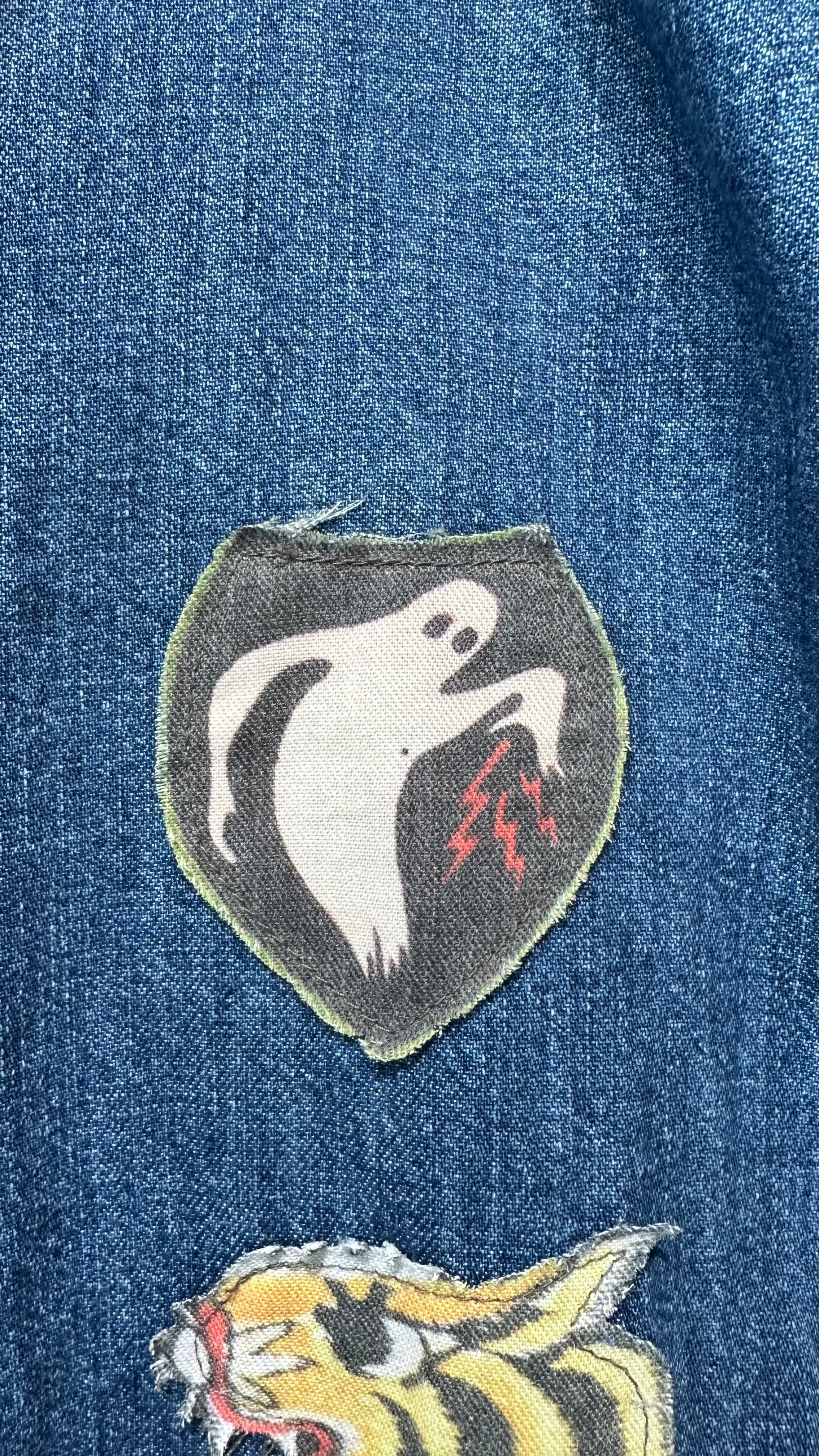 どこか懐かしいレトロでキッチュなビジュアルのワッペンを、絶妙なバランスで配置し、他にはない表情に仕上げました。